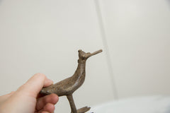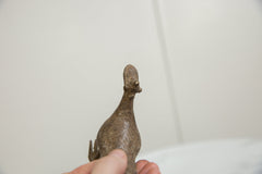 :: Vintage handmade African bronze flat billed bird. Circa mid 20th century and possibly older, this piece has such incredible handmade charm and no two are identical. Create a scene of wildlife with many of our vintage African animal sculptures or add just one to the shelf, these are beautiful collectibles that you or someone you love will cherish forever. As this item is in vintage condition, it may show signs of age and use. You may receive one that is slightly different than the one photographed since we have multiples of this item. Please contact us prior to purchase if you would like us to send additional snapshots of the one we would be sending. Size measures: 2" x 4.75" x 3.75"