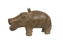 :: Vintage handmade African bronze hippo. Circa mid 20th century and possibly older, each figure in this collection represents a different variation of protection and spirit used inside and outside of the local homes. As this item is in vintage condition, it may show signs of age and use. These are beautiful collectibles that you or someone you love will cherish forever. Size measures: 3" x 7.5" x 4.5"