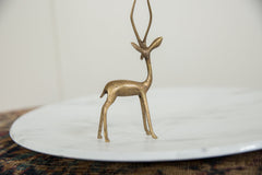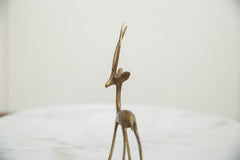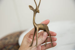 :: Vintage handmade African bronze left facing gazelle. Circa mid 20th century and possibly older, this piece has such incredible handmade charm and no two are identical. Create a scene of wildlife with many of our vintage African animal sculptures or add just one to the shelf, these are beautiful collectibles that you or someone you love will cherish forever. As this item is in vintage condition, it may show signs of age and use. You may receive one that is slightly different than the one photographed since we have multiples of this item. Please contact us prior to purchase if you would like us to send additional snapshots of the one we would be sending. Size measures: 1" x 3" x 6.25"