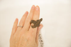 :: Vintage handmade African Bronze Lizard Ring. Circa mid 20th century African bronze casting of a small lizard on a ring band. An awesome statement piece of jewelry or use it as a cocktail napkin ring. As this item is in vintage condition, it may show signs of age, use, and/or oxidation. Size measures approximately:1" x 1.5" x 1".