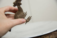 :: Vintage handmade African bronze long tailed bird. Circa mid 20th century and possibly older, this piece has such incredible handmade charm and no two are identical. Create a scene of wildlife with many of our vintage African animal sculptures or add just one to the shelf, these are beautiful collectibles that you or someone you love will cherish forever. As this item is in vintage condition, it may show signs of age and use. You may receive one that is slightly different than the one photographed since we have multiples of this item. Please contact us prior to purchase if you would like us to send additional snapshots of the one we would be sending. Size measures: 2" x 5.75" x 3.75"