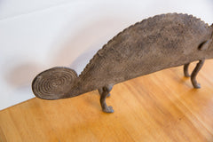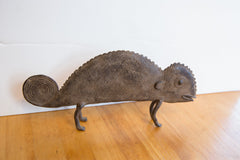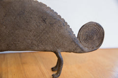 :: Vintage handmade African chameleon. Made approximately 40-70 years ago, each figure in this collection represents a different variation of protection and spirit used inside and outside of the local homes. These are beautiful collectibles that you or someone you love will cherish forever. As this item is in vintage condition, it may show signs of age and use. Size measures: 1.25" x 12.5" x 5.75".