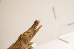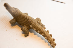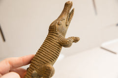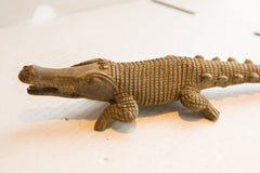 :: Vintage handmade African crocodile sculpture. Circa late mid 20th century, though possibly older, this piece has such incredible handmade charm and no two are identical. Create a scene of wildlife with many of our vintage African animal sculptures or add just one to the shelf, these are beautiful collectibles that you or someone you love will cherish forever. As this item is in vintage condition, it may show signs of age and use. Size measures: 3.25" x 9.5" x 2".