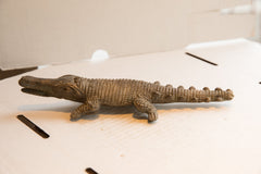 :: Vintage handmade African crocodile sculpture. Circa late mid 20th century, though possibly older, this piece has such incredible handmade charm and no two are identical. Create a scene of wildlife with many of our vintage African animal sculptures or add just one to the shelf, these are beautiful collectibles that you or someone you love will cherish forever. As this item is in vintage condition, it may show signs of age and use. Size measures: 3.25" x 10" x 2".