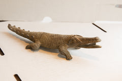 :: Vintage handmade African crocodile sculpture. Circa late mid 20th century, though possibly older, this piece has such incredible handmade charm and no two are identical. Create a scene of wildlife with many of our vintage African animal sculptures or add just one to the shelf, these are beautiful collectibles that you or someone you love will cherish forever. As this item is in vintage condition, it may show signs of age and use. Size measures: 3.25" x 9.5" x 2.5".
