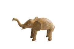 :: Vintage handmade African elephant sculpture. Circa late mid 20th century, though possibly older, this piece has such incredible handmade charm and no two are identical. Create a scene of wildlife with many of our vintage African animal sculptures or add just one to the shelf, these are beautiful collectibles that you or someone you love will cherish forever. As this item is in vintage condition, it may show signs of age and use. Size measures: 3" x 6" x 3.5".