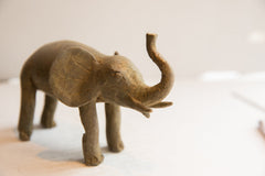 :: Vintage handmade African elephant sculpture. Circa late mid 20th century, though possibly older, this piece has such incredible handmade charm and no two are identical. Create a scene of wildlife with many of our vintage African animal sculptures or add just one to the shelf, these are beautiful collectibles that you or someone you love will cherish forever. As this item is in vintage condition, it may show signs of age and use. Size measures: 3" x 5.5" x 4".