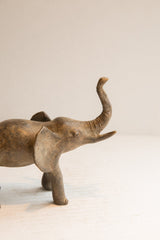 :: Vintage handmade African elephant sculpture. Circa late mid 20th century, though possibly older, this piece has such incredible handmade charm and no two are identical. Create a scene of wildlife with many of our vintage African animal sculptures or add just one to the shelf, these are beautiful collectibles that you or someone you love will cherish forever. As this item is in vintage condition, it may show signs of age and use. Size measures: 3" x 5.5" x 5".