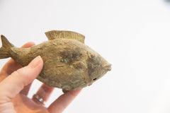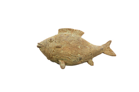 :: Vintage handmade African fish casting. Circa late mid 20th century, though possibly older, this piece has such incredible handmade charm and no two are identical. Create a scene of wildlife with many of our vintage African animal sculptures or add just one to the shelf, these are beautiful collectibles that you or someone you love will cherish forever. As this item is in vintage condition, it may show signs of age and use. Kindly note, this item does not stand on its own. Size measures: 1.5" x 6" x 3".