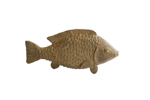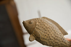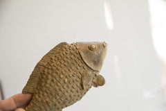 :: Vintage handmade African fish sculpture. Circa late mid 20th century, each figure in this collection represents a different variation of protection and spirit used inside and outside of the local homes. These are beautiful collectibles that you or someone you love will cherish forever. As this item is in vintage condition, it may show signs of age and use. Size measures: 1.5" x 6" x 3.5".