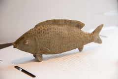 :: Vintage handmade African fish sculpture. Circa late mid 20th century, each figure in this collection represents a different variation of protection and spirit used inside and outside of the local homes. These are beautiful collectibles that you or someone you love will cherish forever. As this item is in vintage condition, it may show signs of age and use. Size measures: 1.5" x 9" x 3.5".