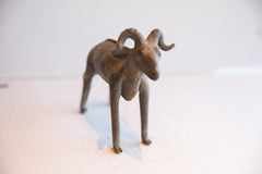 :: Vintage handmade African imperfect ram sculpture. Circa late mid 20th century, though possibly older, this piece has such incredible handmade charm and no two are identical. Create a scene of wildlife with many of our vintage African animal sculptures or add just one to the shelf, these are beautiful collectibles that you or someone you love will cherish forever. As this item is in vintage condition, it may show signs of age and use. Size measures: 2.5" x 5" x 4.5".
