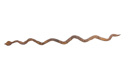 :: Vintage handmade African iron snake. Circa 1960s though possibly older, this piece has such incredible handmade charm and no two are identical. Create a scene of wildlife with many of our vintage African animal sculptures or add just one to the shelf, these are beautiful collectibles that you or someone you love will cherish forever. As this item is in vintage condition, it may show signs of age and use. Size measures: 1" x 18.5" x .2".