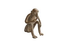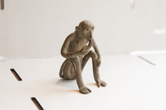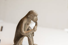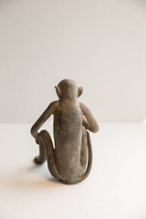 :: Vintage handmade African monkey eating banana figurine. Circa late mid 20th century, though possibly older, this piece has such incredible handmade charm and no two are identical. Create a scene of wildlife with many of our vintage African animal sculptures or add just one to the shelf, these are beautiful collectibles that you or someone you love will cherish forever. As this item is in vintage condition, it may show signs of age and use. Size measures: 3.5" x 3" x 5".
