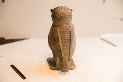 :: Vintage handmade African owl sculpture. Circa late mid 20th century, though possibly older, this piece has such incredible handmade charm and no two are identical. Create a scene of wildlife with many of our vintage African animal sculptures or add just one to the shelf, these are beautiful collectibles that you or someone you love will cherish forever. As this item is in vintage condition, it may show signs of age and use. Size measures: 3" x 3" x 5.5".