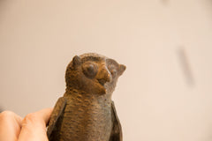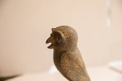 :: Vintage handmade African owl sculpture. Circa late mid 20th century, though possibly older, this piece has such incredible handmade charm and no two are identical. Create a scene of wildlife with many of our vintage African animal sculptures or add just one to the shelf, these are beautiful collectibles that you or someone you love will cherish forever. As this item is in vintage condition, it may show signs of age and use. Size measures: 3" x 3" x 5.5".