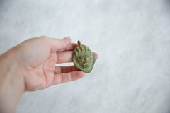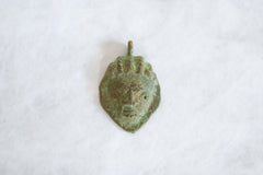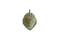 :: Vintage handmade African oxidized bronze mask pendant. Such a unique piece of jewelry, just add chain or rope and you have a necklace. You can even add it to a terrarium or simply place on a shelf or hang on the wall as a piece of decorative art. We can supply a chain for an additional fee, just let us know. Circa mid 20th century and possibly older, this piece has such incredible handmade charm. As this item is in vintage condition, it may show signs of age and use. You may receive one that is slightly different than the one photographed since we have multiples of this item. Please contact us prior to purchase if you would like us to send additional snapshots of the one we would be sending. Size measures: 1.5" x .5" x 2"