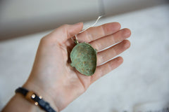 :: Vintage handmade African oxidized mask pendant. Such a unique piece of jewelry, just add chain or rope and you have a necklace. You can even add it to a terrarium or simply place on a shelf or hang on the wall as a piece of decorative art. We can supply a chain for an additional fee, just let us know. Circa mid 20th century and possibly older, this piece has such incredible handmade charm. As this item is in vintage condition, it may show signs of age and use. Size measures: 1.5" x .5" x 2"