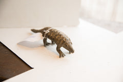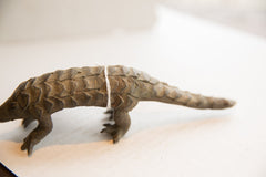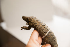 :: Vintage handmade African pangolin sculpture. Circa late mid 20th century, though possibly older, this piece has such incredible handmade charm and no two are identical. Create a scene of wildlife with many of our vintage African animal sculptures or add just one to the shelf, these are beautiful collectibles that you or someone you love will cherish forever. As this item is in vintage condition, it may show signs of age and use. Size measures: 2" x 7" x 2".