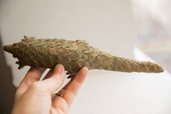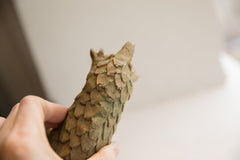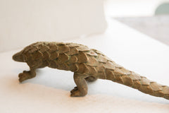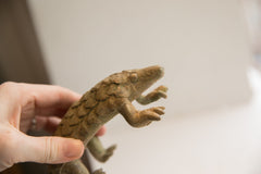 :: Vintage handmade African pangolin sculpture. Circa late mid 20th century, though possibly older, this piece has such incredible handmade charm and no two are identical. Create a scene of wildlife with many of our vintage African animal sculptures or add just one to the shelf, these are beautiful collectibles that you or someone you love will cherish forever. As this item is in vintage condition, it may show signs of age and use. Size measures: 2.5" x 10" x 2.5".