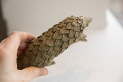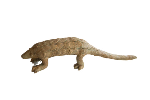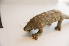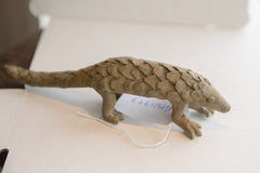 :: Vintage handmade African pangolin sculpture. Circa late mid 20th century, though possibly older, this piece has such incredible handmade charm and no two are identical. Create a scene of wildlife with many of our vintage African animal sculptures or add just one to the shelf, these are beautiful collectibles that you or someone you love will cherish forever. As this item is in vintage condition, it may show signs of age and use. Size measures: 2.5" x 9" x 2".
