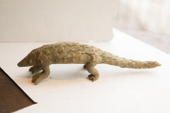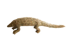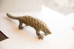 :: Vintage handmade African pangolin sculpture. Circa late mid 20th century, though possibly older, this piece has such incredible handmade charm and no two are identical. Create a scene of wildlife with many of our vintage African animal sculptures or add just one to the shelf, these are beautiful collectibles that you or someone you love will cherish forever. As this item is in vintage condition, it may show signs of age and use. Size measures: 2.5" x 9" x 2.5".