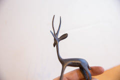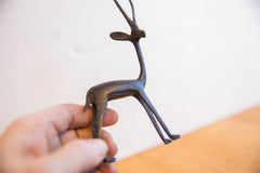 :: Vintage handmade African right facing gazelle with dark patina. Circa 1960s though possibly older, this piece has such incredible handmade charm and no two are identical. Create a scene of wildlife with many of our vintage African animal sculptures or add just one to the shelf, these are beautiful collectibles that you or someone you love will cherish forever. As this item is in vintage condition, it may show signs of age and use. Size measures: 1" x 3" x 6".