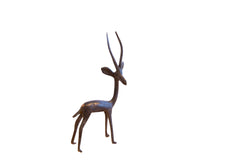 :: Vintage handmade African right facing gazelle with dark patina. Circa 1960s though possibly older, this piece has such incredible handmade charm and no two are identical. Create a scene of wildlife with many of our vintage African animal sculptures or add just one to the shelf, these are beautiful collectibles that you or someone you love will cherish forever. As this item is in vintage condition, it may show signs of age and use. Size measures: 1" x 3" x 6".