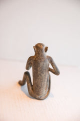 :: Vintage handmade African sitting monkey figurine. Circa late mid 20th century, though possibly older, this piece has such incredible handmade charm and no two are identical. Create a scene of wildlife with many of our vintage African animal sculptures or add just one to the shelf, these are beautiful collectibles that you or someone you love will cherish forever. As this item is in vintage condition, it may show signs of age and use. Size measures: 3" x 3.5" x 4.5".