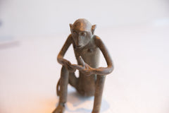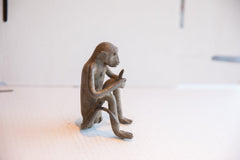 :: Vintage handmade African sitting monkey with banana sculpture. Circa late mid 20th century, though possibly older, this piece has such incredible handmade charm and no two are identical. Create a scene of wildlife with many of our vintage African animal sculptures or add just one to the shelf, these are beautiful collectibles that you or someone you love will cherish forever. As this item is in vintage condition, it may show signs of age and use. Size measures: 3.25" x 3" x 5".