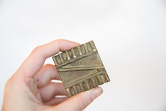 :: Vintage handmade square bronze coin. Circa mid 20th century and possibly older, this piece has such incredible handmade charm and no two are identical. Possibly used to stamp patterns into clay. As this item is in vintage condition, it may show signs of age and use. You may receive one that is slightly different than the one photographed since we have multiples of this item. Please contact us prior to purchase if you would like us to send additional snapshots of the one we would be sending. Size measures: 2" x 2" x 0.5"