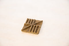 :: Vintage handmade square bronze coin. Circa mid 20th century and possibly older, this piece has such incredible handmade charm and no two are identical. Possibly used to stamp patterns into clay. As this item is in vintage condition, it may show signs of age and use. You may receive one that is slightly different than the one photographed since we have multiples of this item. Please contact us prior to purchase if you would like us to send additional snapshots of the one we would be sending. Size measures: 2" x 2" x 0.5"