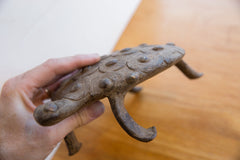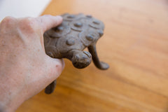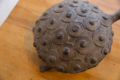 :: Vintage handmade African turtle. Made approximately 40-70 years ago, each figure in this collection represents a different variation of protection and spirit used inside and outside of the local homes. These are beautiful collectibles that you or someone you love will cherish forever. As this item is in vintage condition, it may show signs of age and use. Size measures: 6" x 8" x 2.5".
