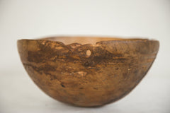 :: Vintage handmade African wooden bowl with tons of character and charm. Circa mid 20th century or possibly older. Please note this is an aged and lived with item, and as such it may have cracks, repairs, chips and/or imperfections. Kindly reference photographs for which of these may apply. Size measures: 12" x 12" x 6"