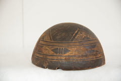 :: Vintage handmade African wooden bowl with tons of character and charm. Circa mid 20th century or possibly older. Please note this is an aged and lived with item, and as such it may have cracks, repairs, chips and/or imperfections. Kindly reference photographs for which of these may apply. Size measures: 13" x 13" x 7"