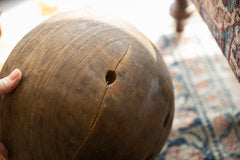 :: Vintage handmade African wooden bowl with tons of character and charm. Circa 1930s, believed to be from the Tuareg people in/around Niger. Please note this is an aged and lived with item, and as such it may have cracks, repairs, chips and/or imperfections. Kindly reference photographs for which of these may apply. Size measures: 12" x 12" x 5.5".