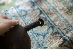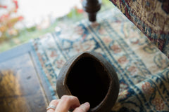 :: Vintage handmade African wooden pitcher with tons of character and charm. Circa 1920s or possibly older and originating from Sudan. Please note this is an aged and lived with item, and as such it may have cracks, repairs, chips and/or imperfections. Kindly reference photographs for which of these may apply. Size measures: 5" x 8.5" x 6"