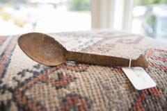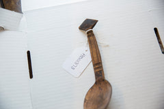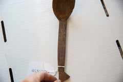 :: Vintage handmade African wooden spoon with tons of character and charm. Circa 1930s, believed to be from the Tuareg people in/around Niger. Please note this is an aged and lived with item, and as such it may have cracks, repairs, chips and/or imperfections. Kindly reference photographs for which of these may apply. Size measures: 2.5" x 9" x 3.5".