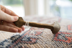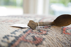 :: Vintage handmade African wooden spoon with tons of character and charm. Circa 1930s, believed to be from the Tuareg people in/around Niger. Please note this is an aged and lived with item, and as such it may have cracks, repairs, chips and/or imperfections. Kindly reference photographs for which of these may apply. Size measures: 1.75" x 6" x 3".