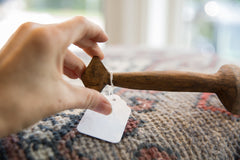 :: Vintage handmade African wooden spoon with tons of character and charm. Circa 1930s, believed to be from the Tuareg people in/around Niger. Please note this is an aged and lived with item, and as such it may have cracks, repairs, chips and/or imperfections. Kindly reference photographs for which of these may apply. Size measures: 2.25" x 8.5" x 3".