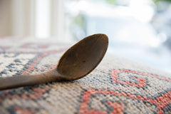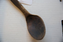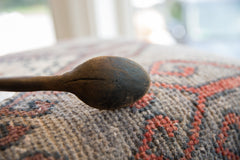 :: Vintage handmade African wooden spoon with tons of character and charm. Circa 1930s, believed to be from the Tuareg people in/around Niger. Please note this is an aged and lived with item, and as such it may have cracks, repairs, chips and/or imperfections. Kindly reference photographs for which of these may apply. Size measures: 2.5" x 8" x 3".