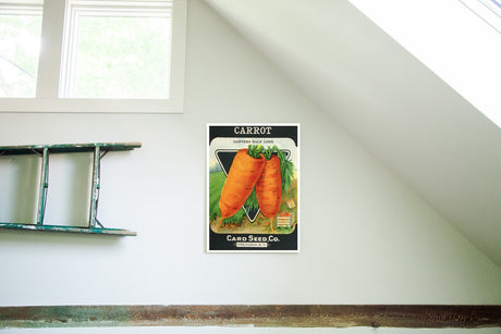 :: Carrots! In love with this rare antique deco seed packet from the early 20th century made into large hang-able wall art. An Old New House Original piece made from photographs + detail scans, printed directly onto birchwood. Have these pieces on their own or in a group in a space near or in the kitchen or in a room that is in need of some natural pop of color!