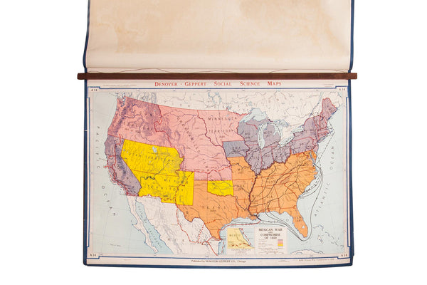 :: Vintage 1967 edition Denoyer - Geppert Social Science Map. Sold with awesome handmade in USA walnut magnetic rod that fits along the top and has a string attached, making this piece all ready to hang! Large wall art statement piece, perfect as stand alone or center of a gallery wall. Oh the places you will go! This vintage map has overall slight signs of use and age. Size measures 44" w x 32" t ; handmade in USA walnut wood rod for the top of map measures 46".
