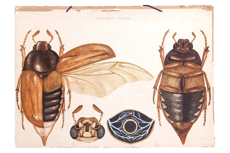 :: Very cool and unusual vintage circa 1940s Polish school science chart that is a work of art lithograph with amazing colors and renderings of a fly and beetle. In vintage condition showing signs of use and age. Measures approximately 26" x 38".