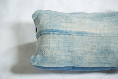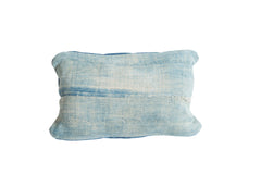 :: Old New House Original and exclusive handmade pillow featuring reclaimed vintage African Indigo textile fragment. Perfectly sun-faded, this indigo's coloring is beyond lovely. Enjoy a lovingly made in house ONH throw pillow! Medium blue cotton canvas back. Features envelope enclosure: Price includes made in USA luxurious, all-natural Kapok inserts with organic cotton covers. Exact size measures 12" x 20" x 5".