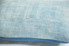:: Old New House Original and exclusive handmade pillow featuring reclaimed vintage African Indigo textile fragment. Perfectly sun-faded, this indigo's coloring is beyond lovely. Enjoy a lovingly made in house ONH throw pillow! Medium blue cotton canvas back. Features envelope enclosure: Price includes made in USA luxurious, all-natural Kapok inserts with organic cotton covers. Exact size measures 12" x 20" x 5".
